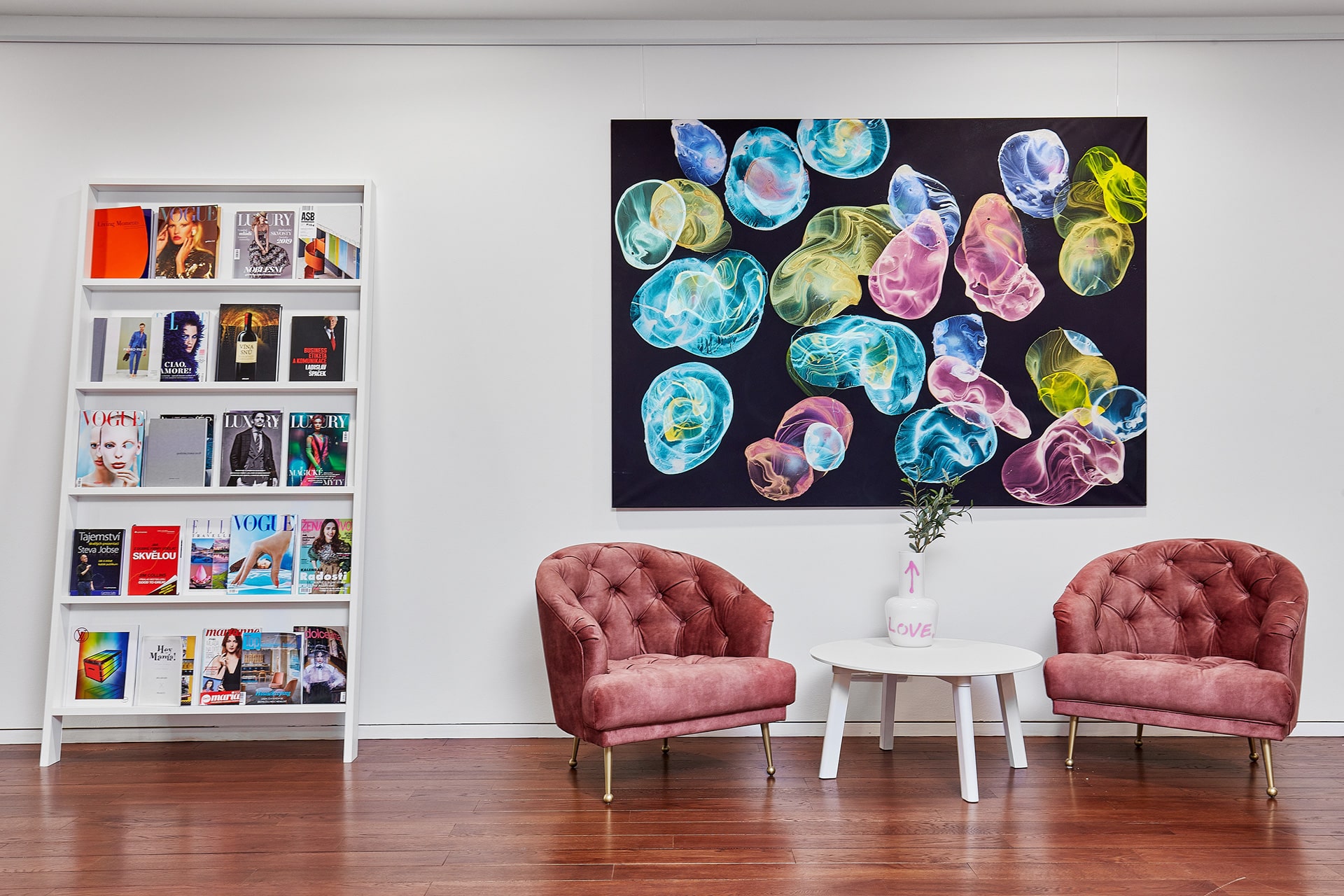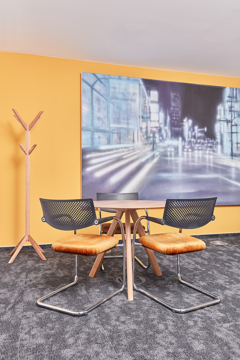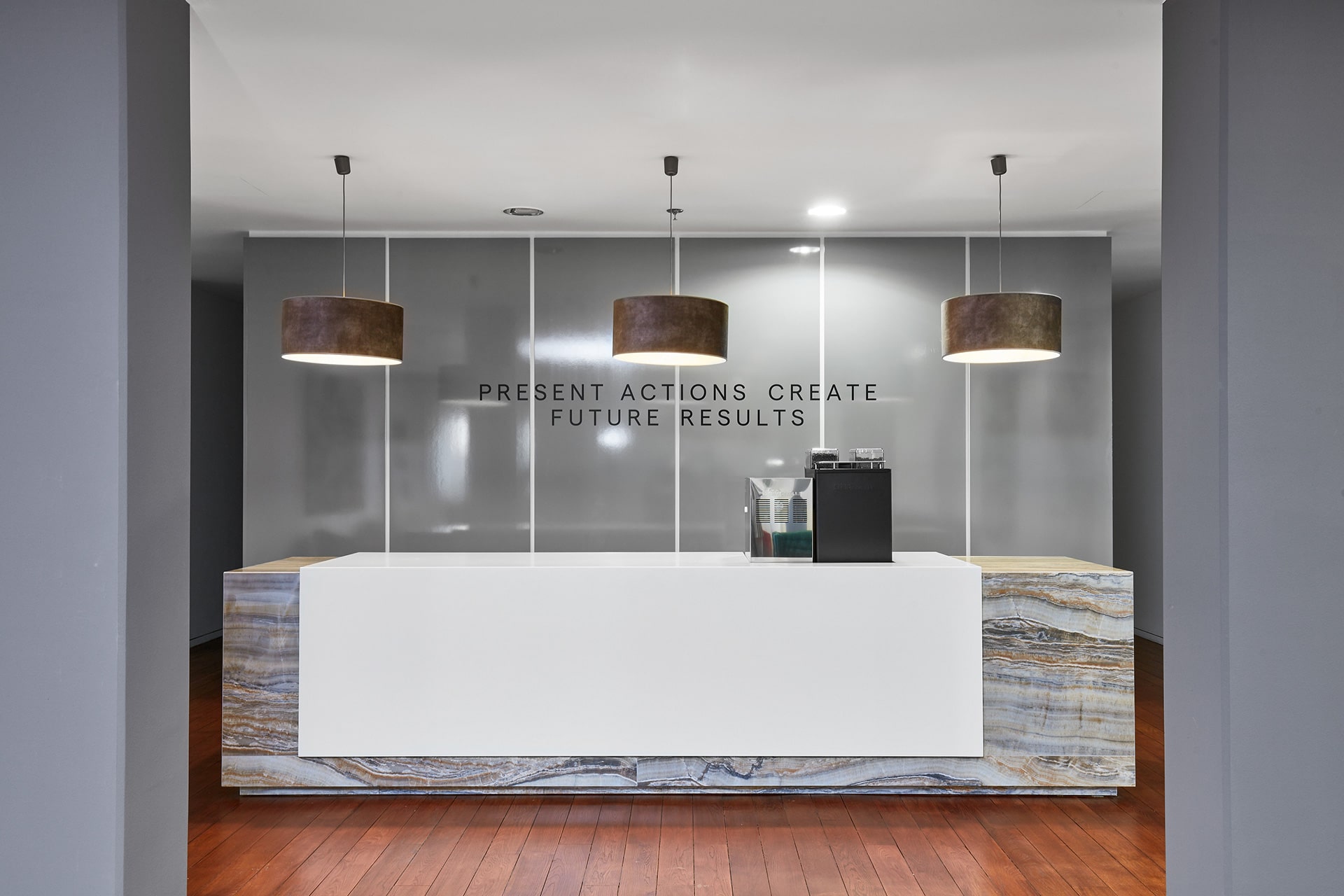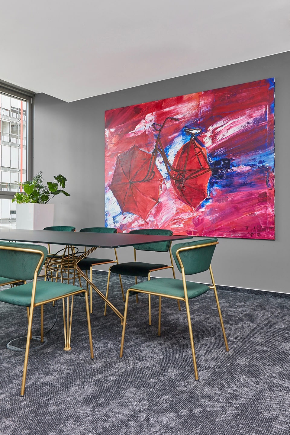 Interier design návrh a realizace klientské zóny investiční skupiny C2H do které patří módní značky PF, Kara a Etam. headquarter společnosti se nachází v ikonické budově Nile House v Karlíně, 2019.
