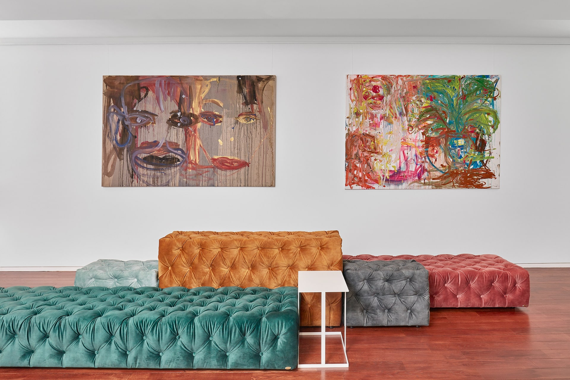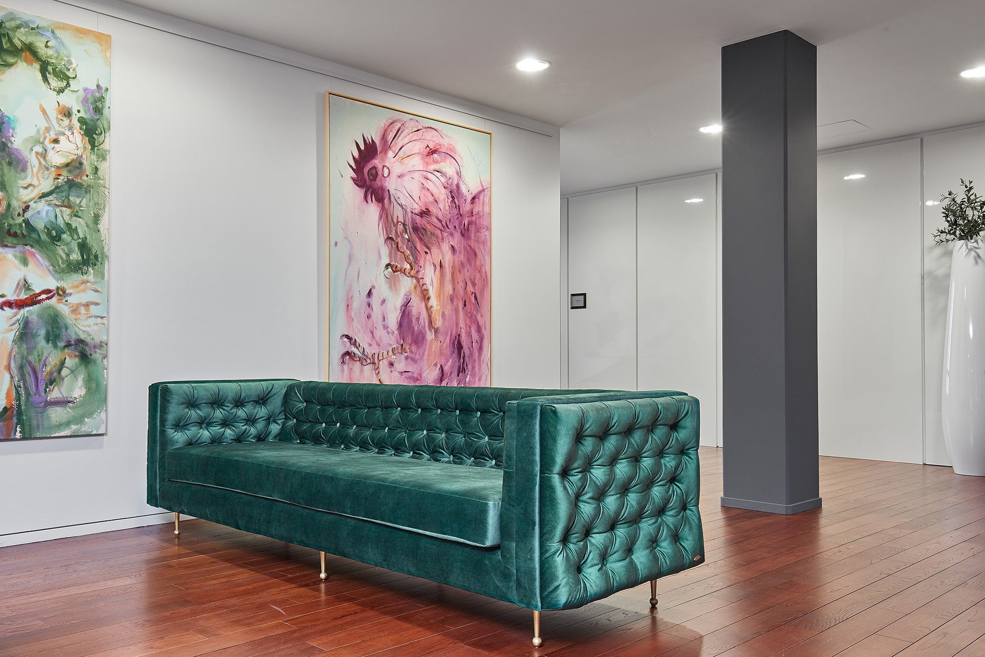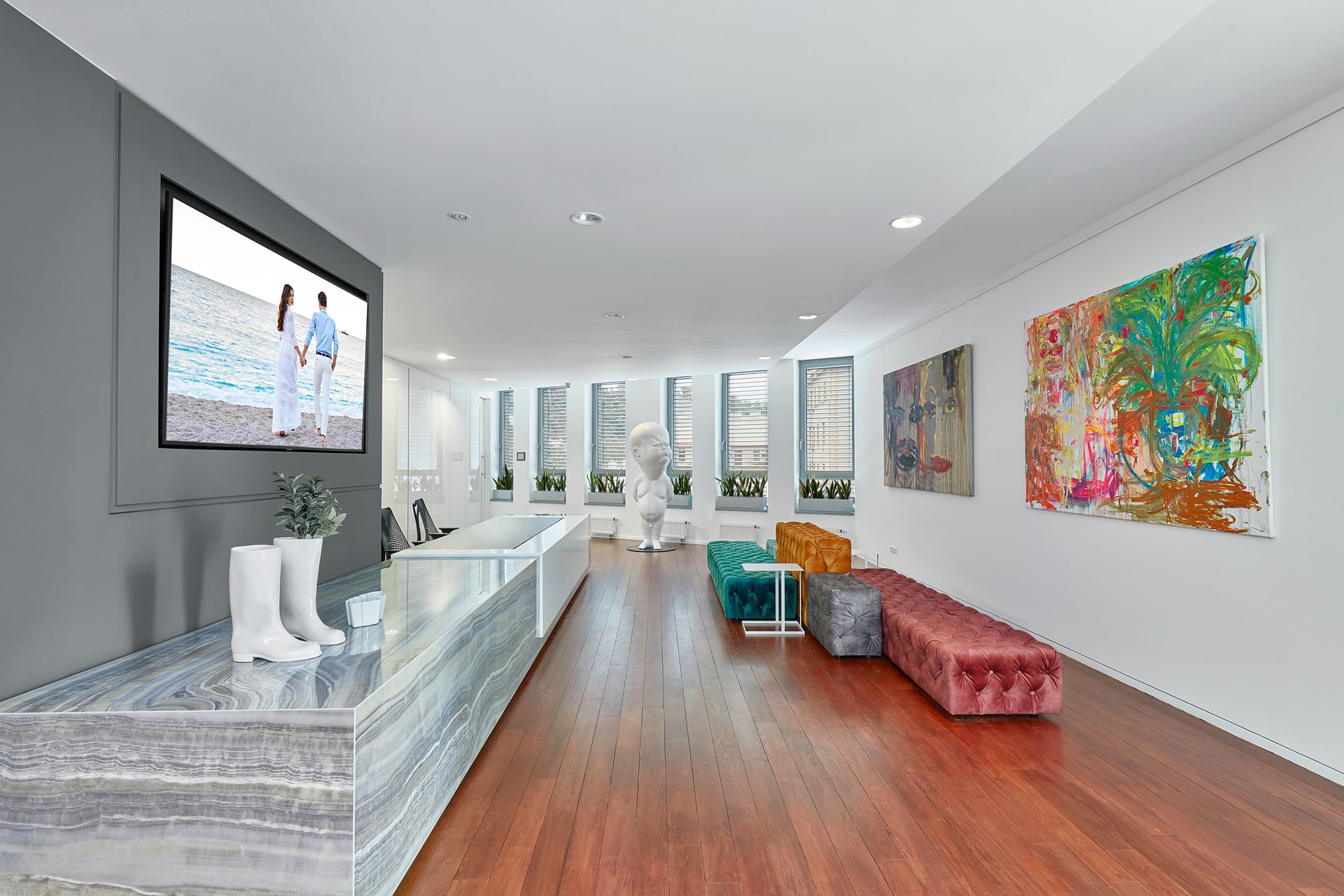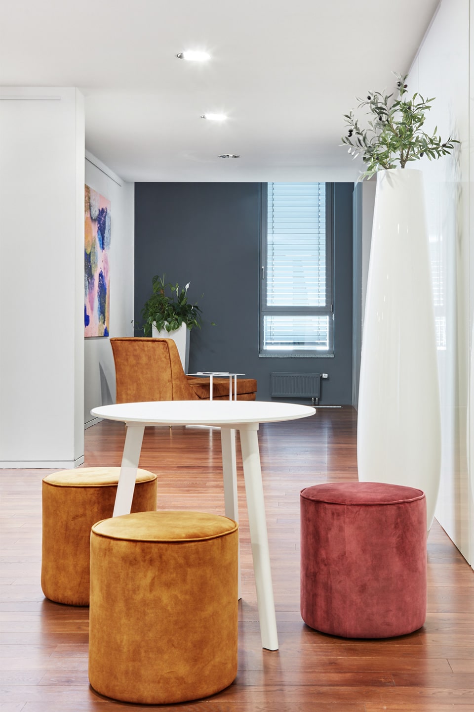 Interier design návrh a realizace klientské zóny investiční skupiny C2H do které patří módní značky PF, Kara a Etam. headquarter společnosti se nachází v ikonické budově Nile House v Karlíně, 2019.