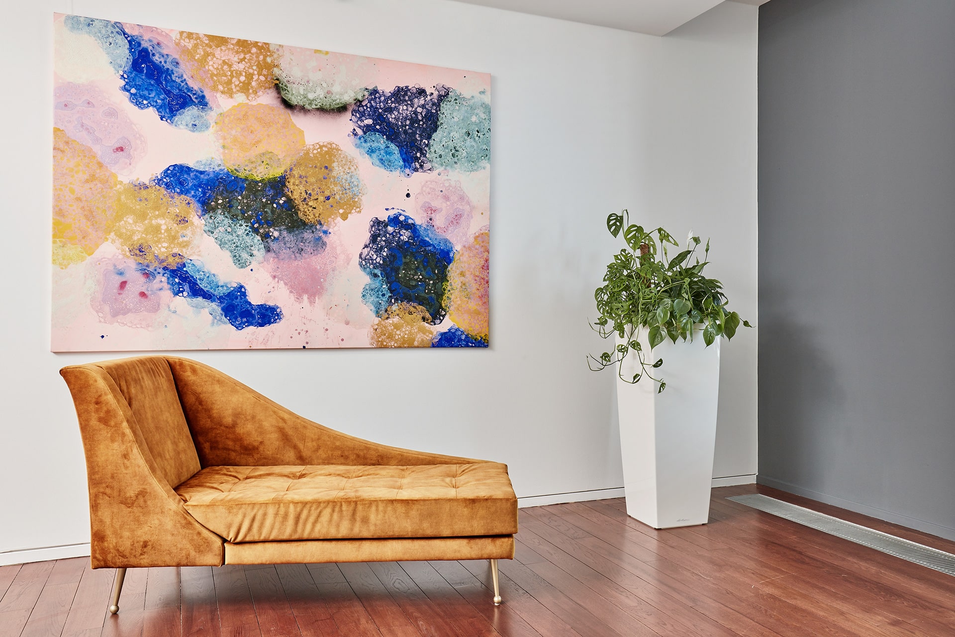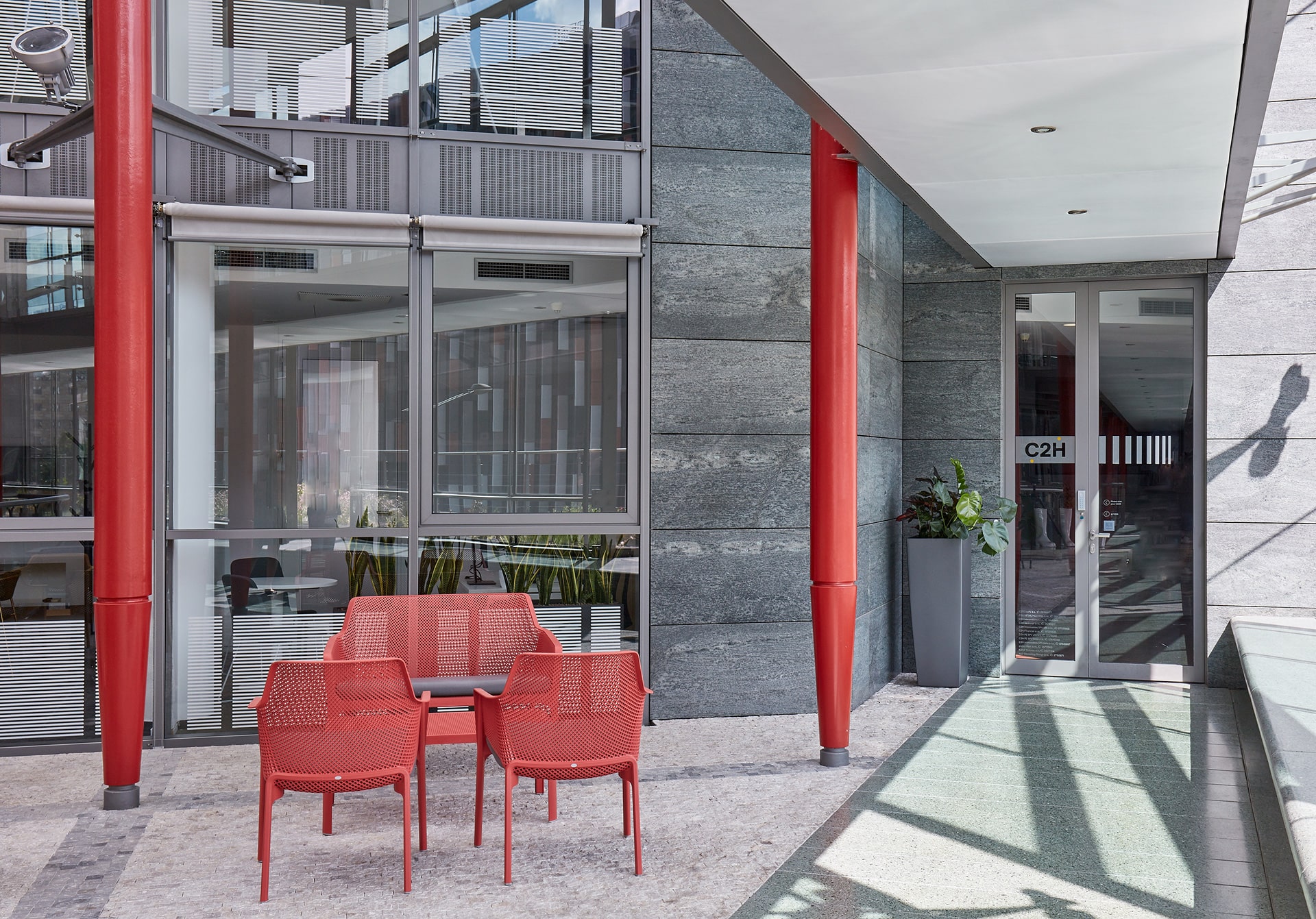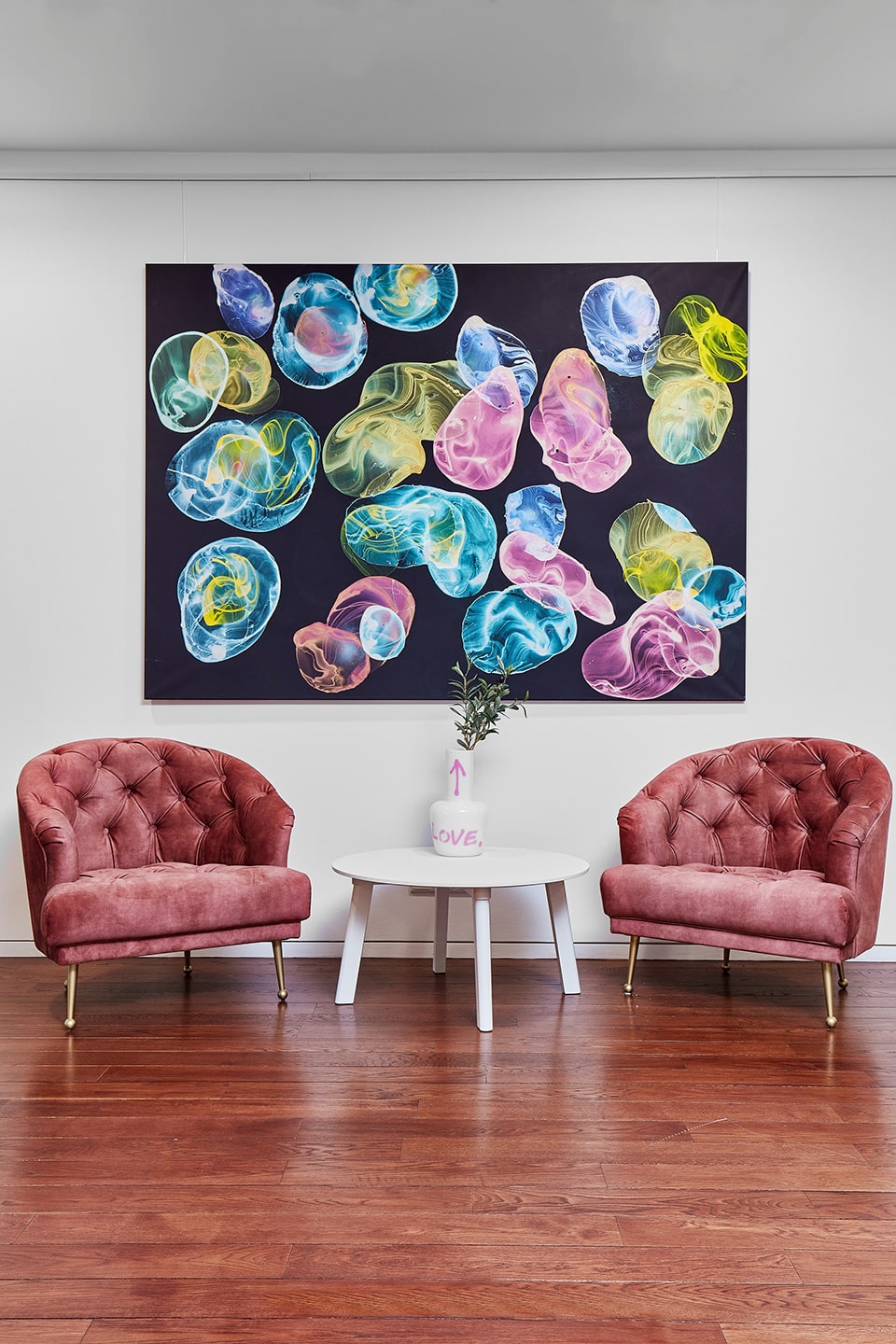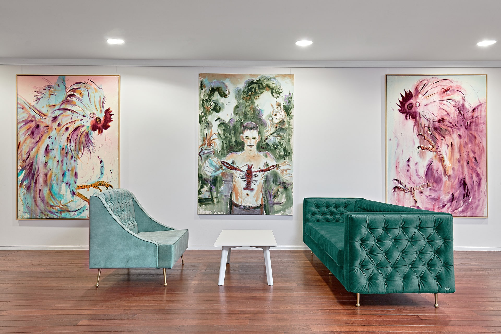 Interier design návrh a realizace klientské zóny investiční skupiny C2H do které patří módní značky PF, Kara a Etam. headquarter společnosti se nachází v ikonické budově Nile House v Karlíně, 2019.